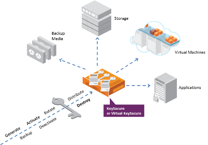 StorageSecure 可以在硬件中安全地存储所有加密密钥及其关联参数。密钥还可以与SafeNet KeySecure(密钥保护)集中式密钥管理解决方案共享,该解决方案不仅可以安全地存储 StorageSecure 密钥,还可以存储其他异类加密密钥,实现真正的集中式密钥管理。
